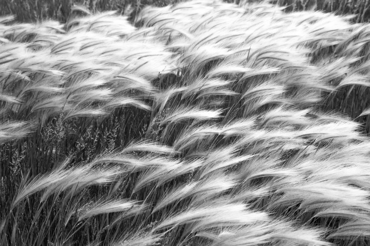 After much consideration and research, the quest for wide open vistas led me to the Great Plains. And I found what I was looking for—vast fields and open skies. Considering that the universe is constituted of only 5% matter, I composed many of my landscape shots so the sky would occupy 95% of the space within the frame. I emphasized converging lines to convey distance. In a closeup of whip grass, wind blurring the feathery strands was a demonstration of natural forces. And cultivated fields provided a metaphor for, well, “fields.”