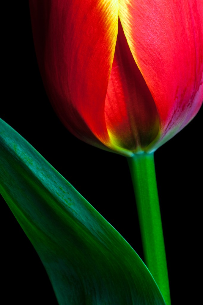 When the tulips matured, Linda put one of them in a vase and set it in the living room. Seeing the striations and yellow “feathering” up close, I had to take it into the studio to get some feature shots.