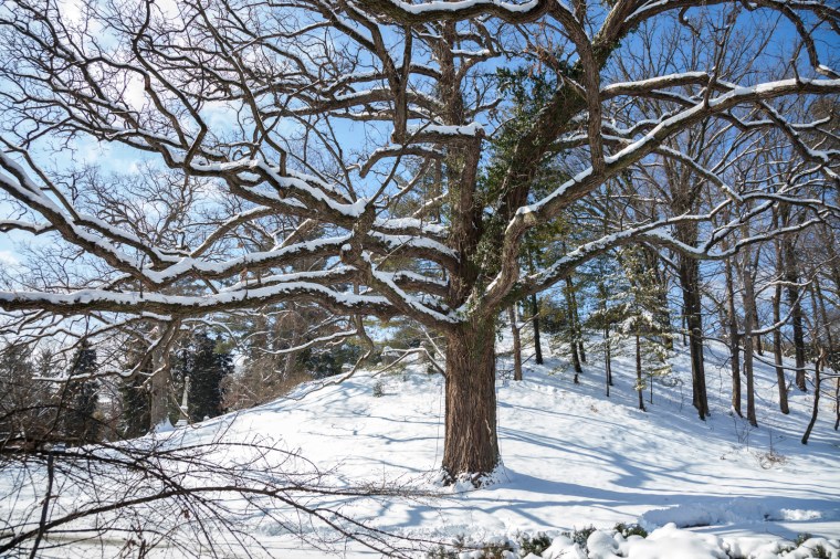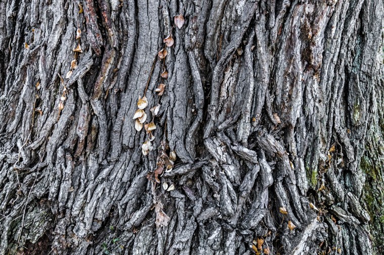 The bark on oak trees is robust. There’s a saying in German: “It’s no skin off in old oak’s back if a wild boar wants to use its bark as a scratching post.” The tree can survive lightning strikes and deep cracks because the wood is permeated with tannins that discourage the growth of harmful fungi. These substances fend off most insects, and the tree will broadcast—through the helpful fungi at its roots—a signal to all the oaks in the area, prompting them to pump tannins through their veins as well. They also improve the taste of wine that’s stored in barrels made from the wood. Native Americans used bur oak leaves as medication for heart problems, reducing fevers and improving circulation. Curiously, scientists have observed that the blood pressure of forest visitors rises went they are under conifers, whereas it calms down and falls in stands of oak trees.
