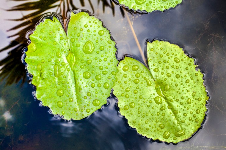 The pads are heart-shaped and rounded. The upper side is water repellant and green, while the underside is purplish-red. The world’s largest water lily is the Victoria amazonica, native to the Amazon River basin. The first night it opens the flower is white, the second night it becomes pink, and the pads can be 10 feet in diameter with stalks as long as 26 feet.