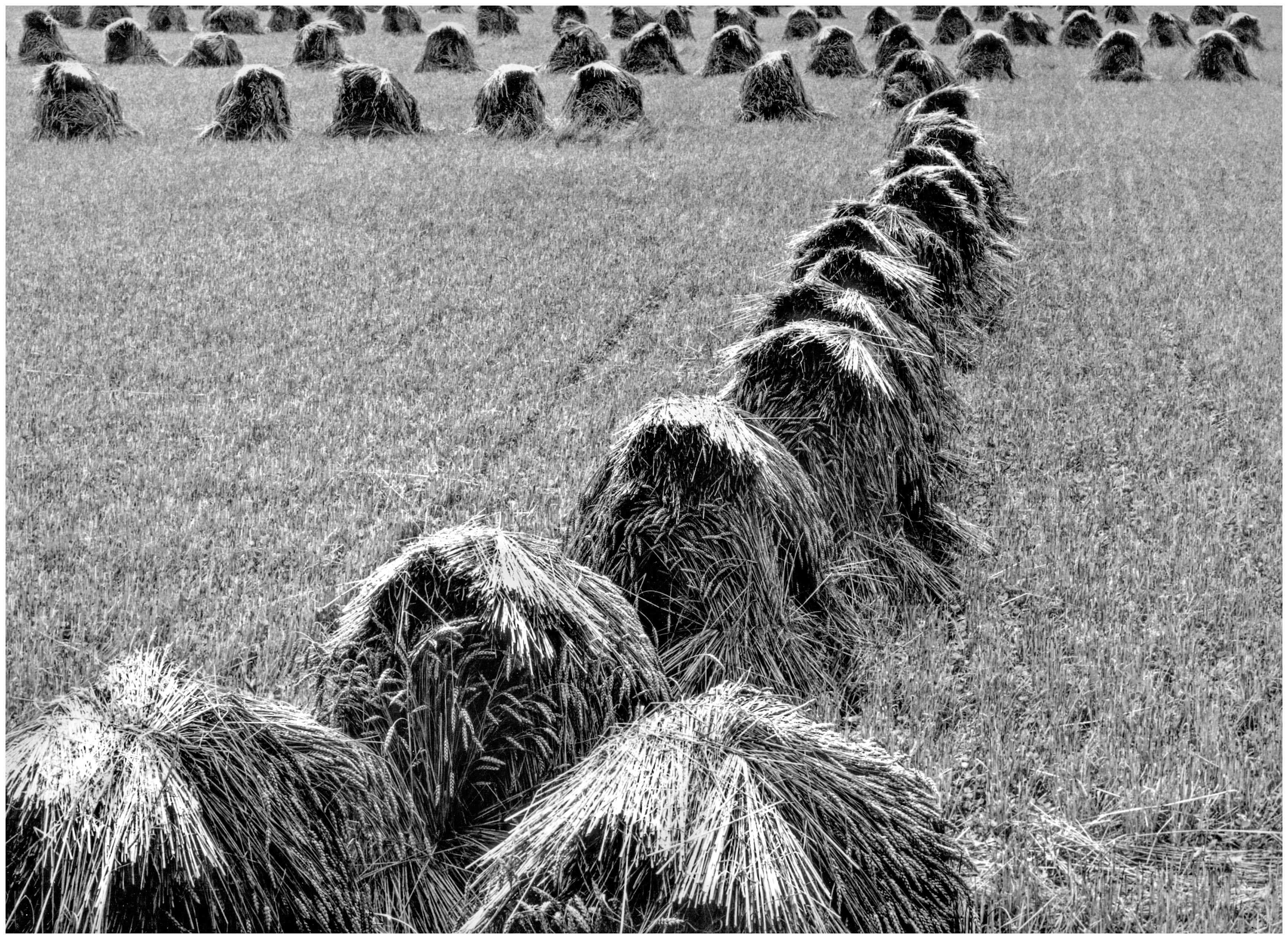 “Shocks,” he said. “Wheat shocks. Do you know why we arrange them like that?” I shook my head. “It’s a lot more work to do it that way, and it takes longer than rolling. Either way, the bulk of the wheat stays dry. But we do it because it’s beautiful.”