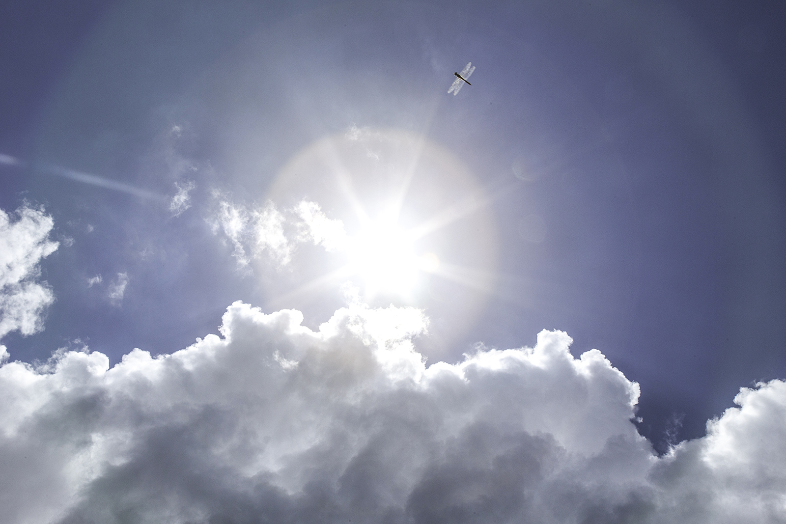 Look closely. Anyone who has engaged in sustained creative activity, irrespective of medium and expression, has encountered a multitude of “happy accidents,” positive outcomes that occur spontaneously, without intention or planning. Here, a dragonfly happened to be in the frame when I was photographing the sun and clouds.