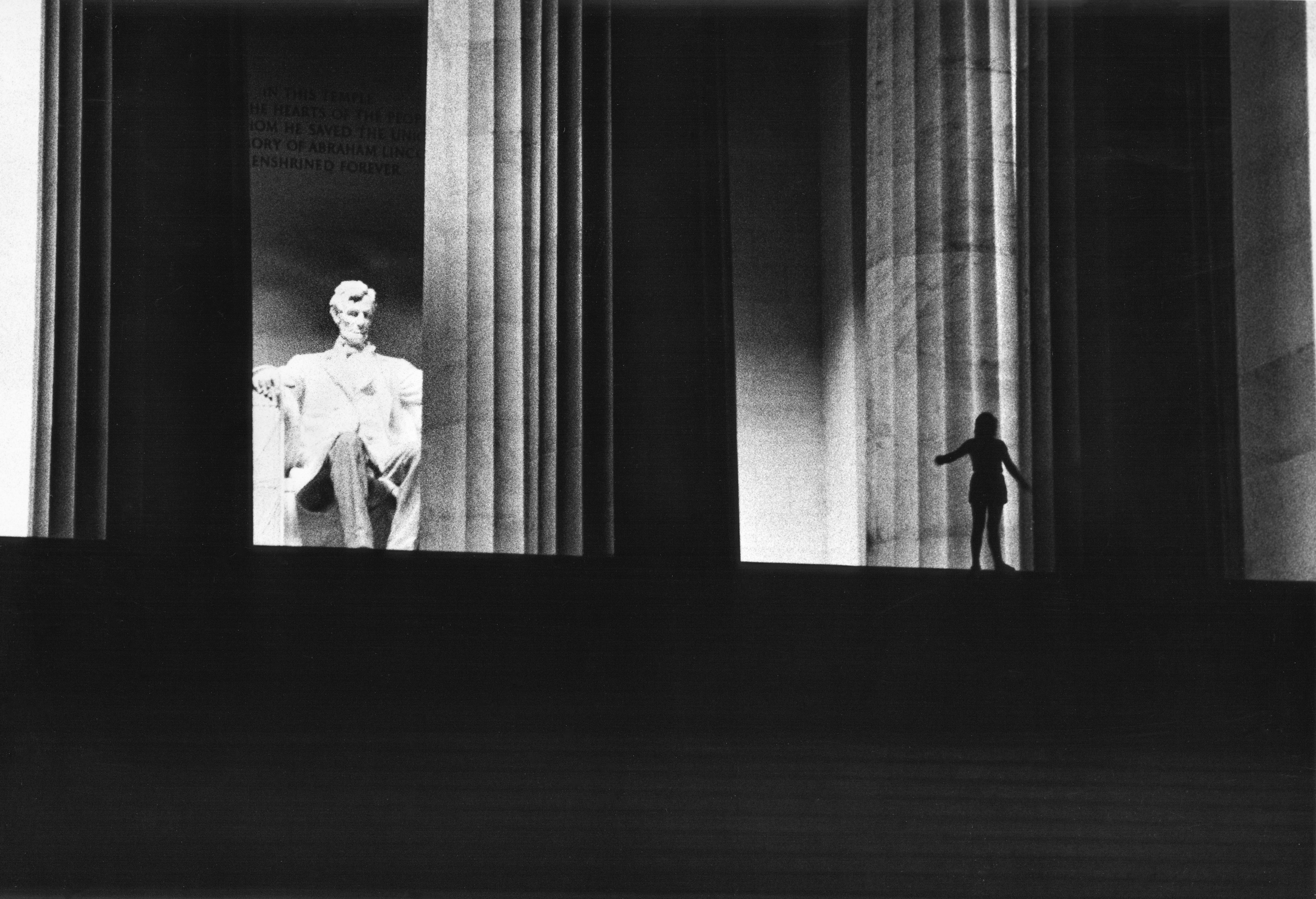 This image brings to mind History, not as a subject to be studied but as a lived experience of past performance. The posture of the woman above seems to say she is exhilarated, feeling the power of the place in that moment. As well, her juxtaposition between columns and the statue of Lincoln provides a symbol of humanity standing on the threshold, looking to the future from a background of struggle and achievement—triumph over adversity and a shift in social policy toward freedom for all.